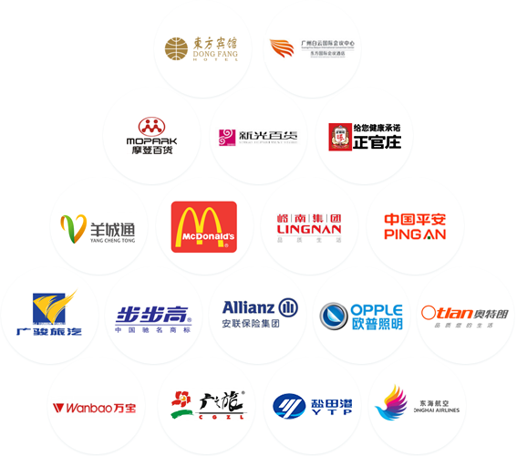 廣發(fā)銀行、廣州塔、志高空調(diào)、順德農(nóng)商行、TCL集團(tuán)股份有限公司、亞太森博紙業(yè)有限公司、廣州地鐵集團(tuán)有限公司